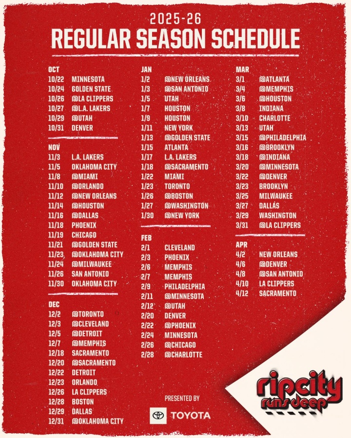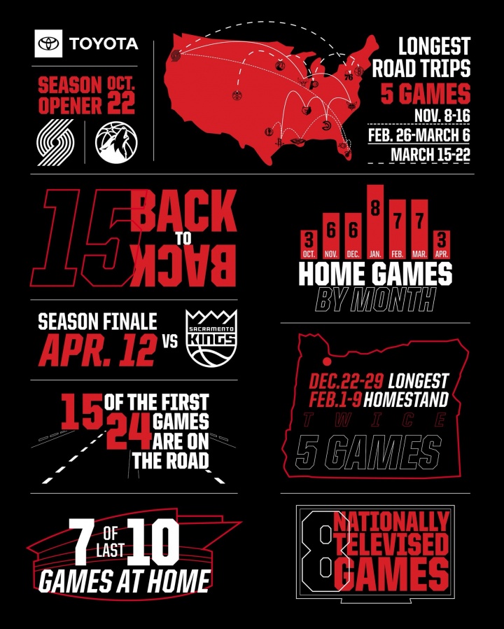 赛程信息-开拓者新赛季赛程:8场全美直播 15场背靠背 揭幕战打森林狼